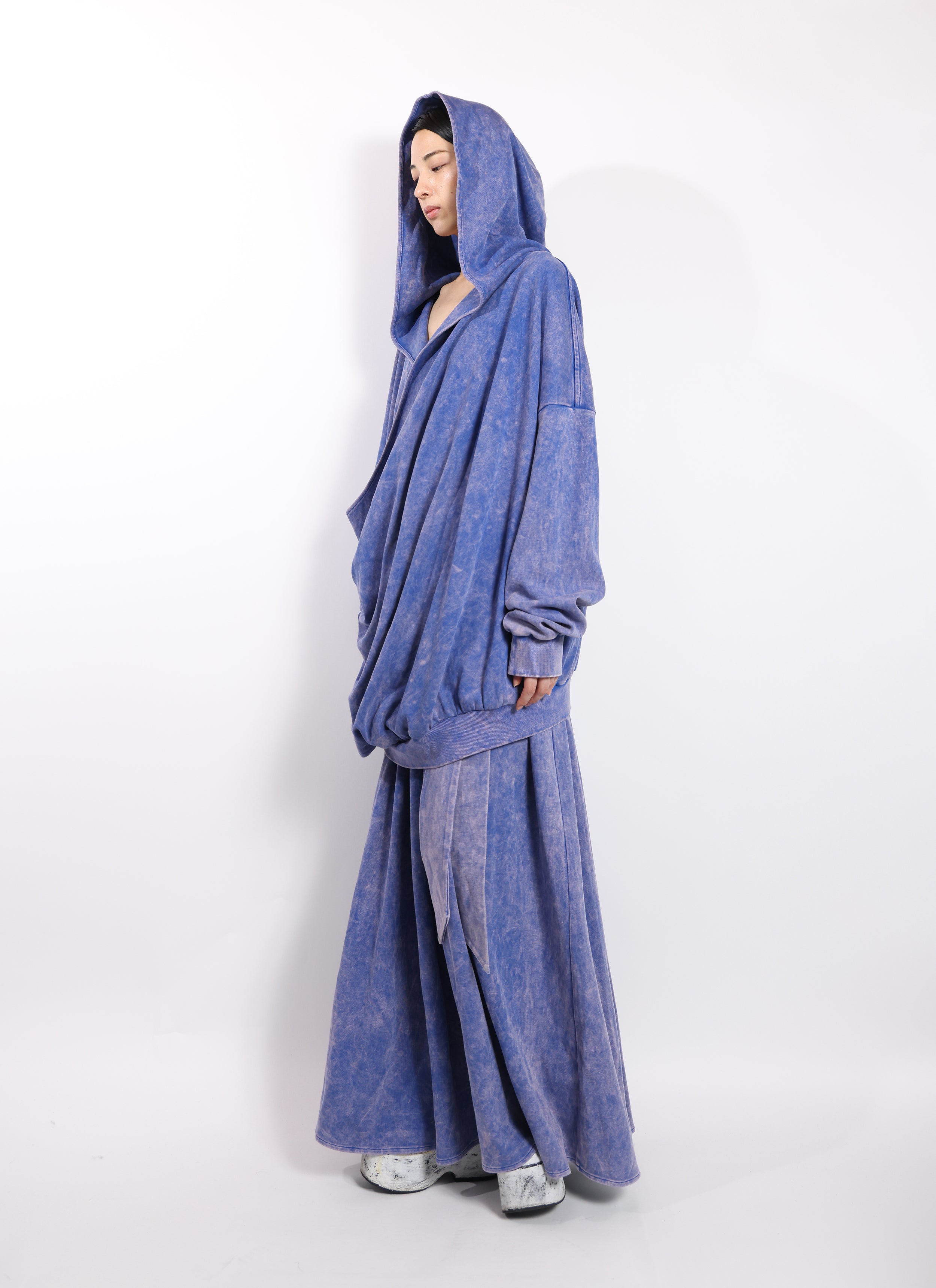 HOODY WITH FRONT RUFFLE BLEACHED WITH OUR SPECIAL TECHNIQUE